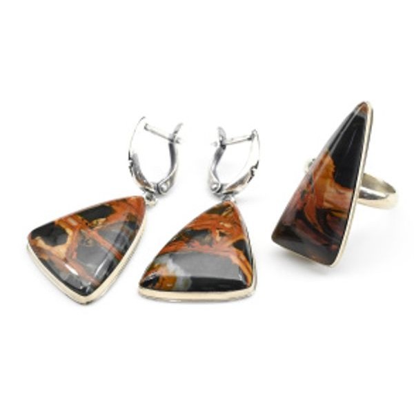Кольцо и серьги с яшмой Пикассо