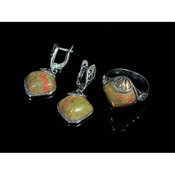 Кольцо и серьги из унакита