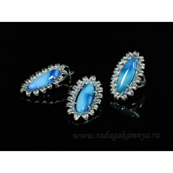 Кольцо и серьги с агатом тонированным, цвет голубой