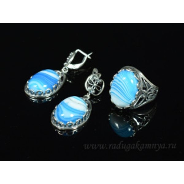 Кольцо и серьги с агатом