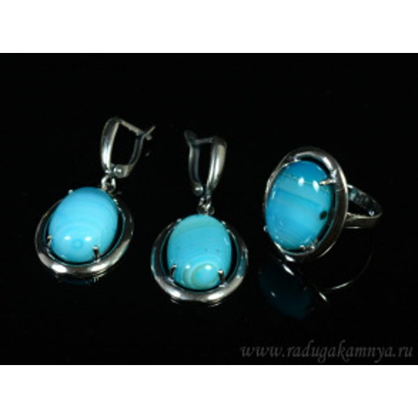 Кольцо и серьги с агатом тонированным, цвет голубой