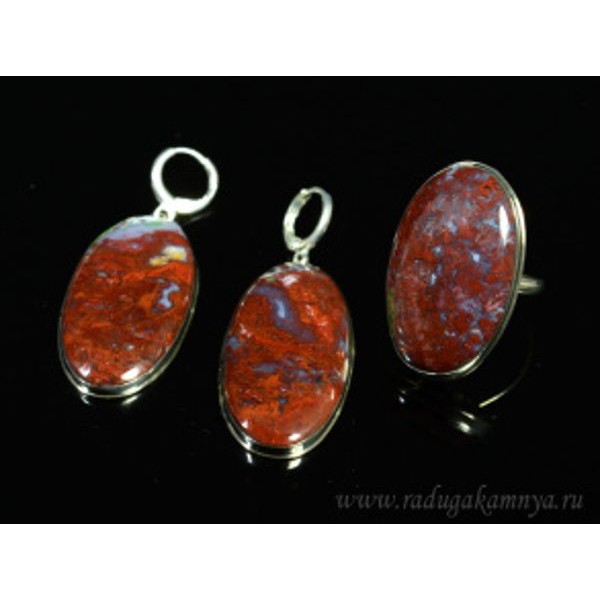 Кольцо и серьги с агатом тонированным, цвет красн..