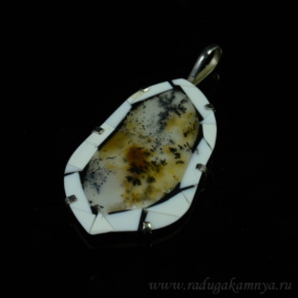 • Кулон из агата мохового и кахолонга, 29*47мм.
