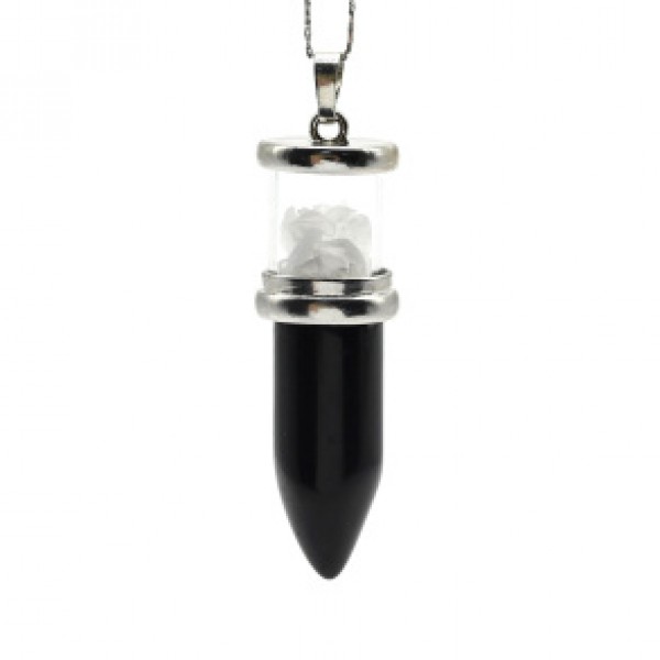 • Кулон из агата черного " Пуля " с крошкой горного хрусталя 17*50мм
