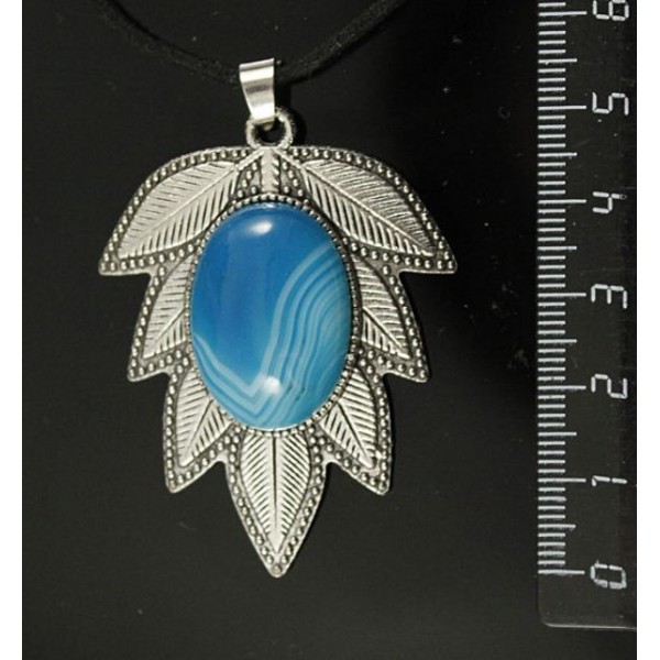 • Кулон из агата синего (тонировка) "лист", цвет ант. серебро, овал 25х18мм