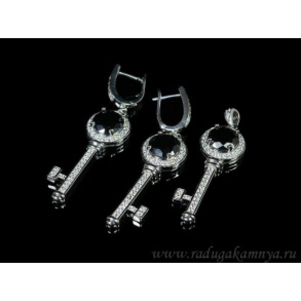 Серьги и Кулон "Ключ" с цирконом цвет агат. (иск.)