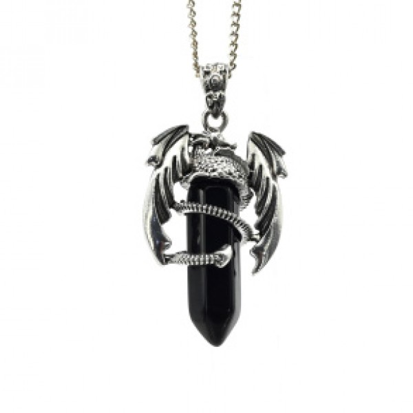• Кулон Дракон 25*41мм с агатом черным (иск.)