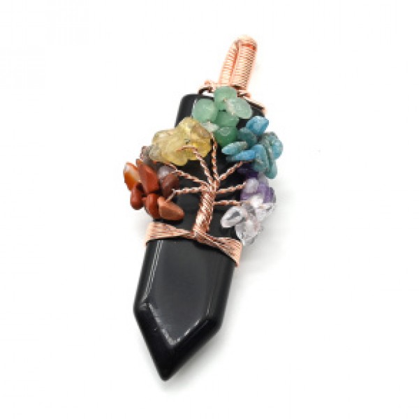 Кулон -кристалл 7 чакр 28*70мм с агатом черным