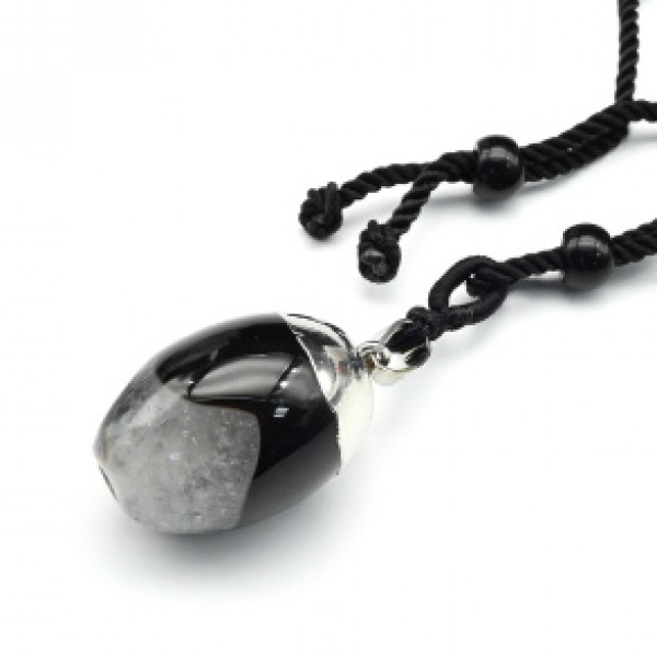 Кулон из агата черного бочонок на шнурке 18*25мм, 62см