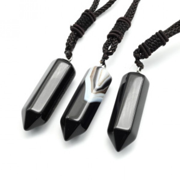 Заколка-шпилька из агата черного и обсидиана снежн..