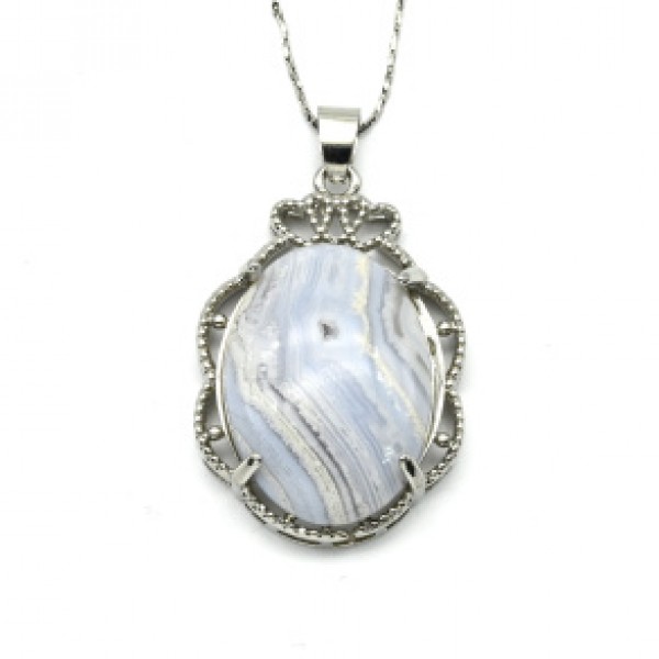 Кулон с агатом голубым (сапфирином) в металле овал 23*34мм