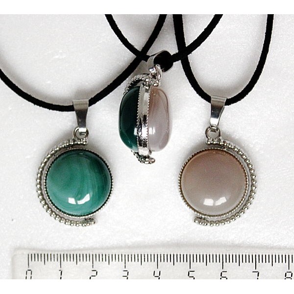 • Кулон из агата зеленого (тонировка) и агата серого, круг 20мм, оправа "глобус", двусторонний