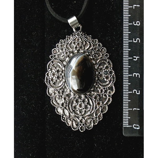 Кулон из агата черного, овал 25х18мм, филигрань