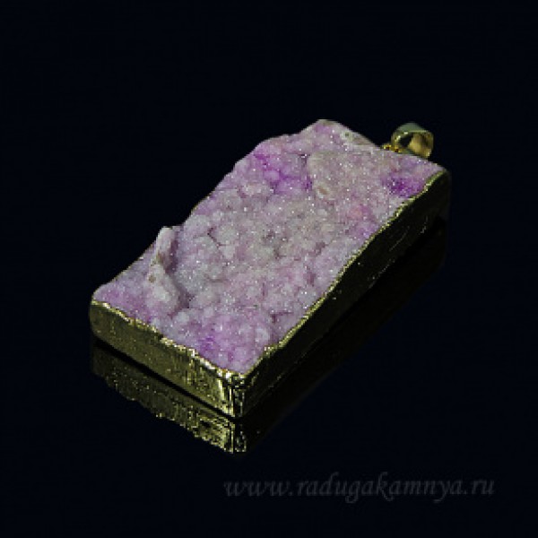 Кулон из агата тонированн. прямоугольник 25*50мм в золотистом обрамлении цвет сиреневый