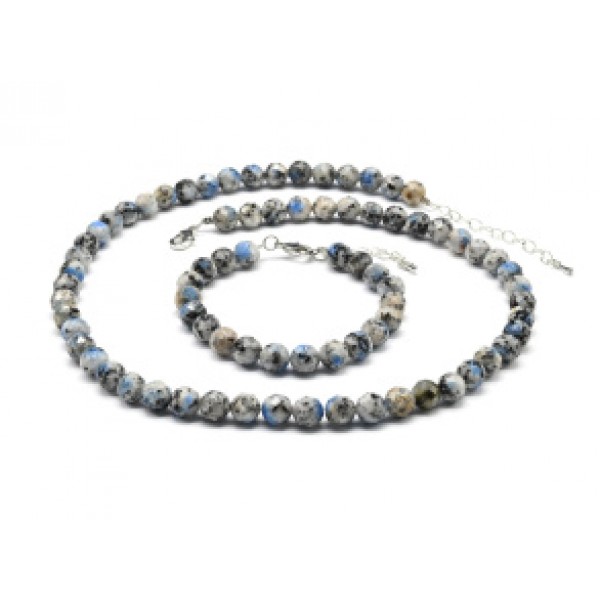 Бусы и браслет из яшмы синей шарик гр.8мм, 47см, 17,5см