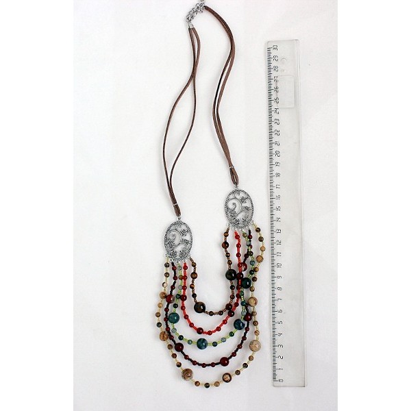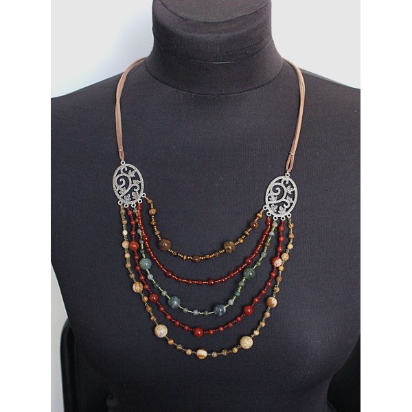 Бусы из яшмы песочной, яшмы красной, яшмы зеленой, тигрового глаза и сердолика, 5 нитей, коннектор "плющ"