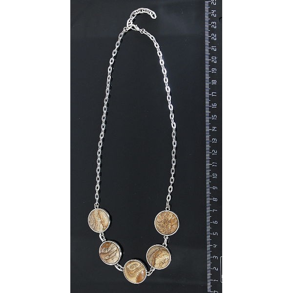 Колье из яшмы песочной, на цепочке, 5 камней, круг 20мм