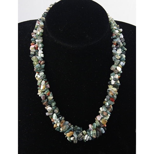 Колье "жгут" 3 нити галтовка яшма зеленая 47 см