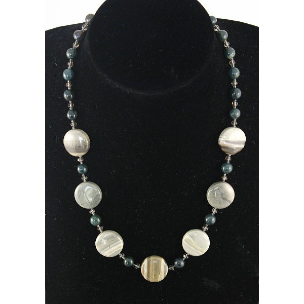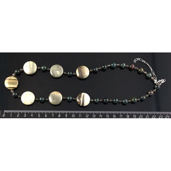 Колье из яшмы песочной и кошачьего глаза (иск.), н..