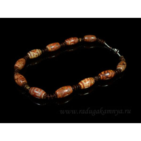 Бусы из агата тибетского бочонок 14*23мм, диски 8мм рыжий, 49см.
