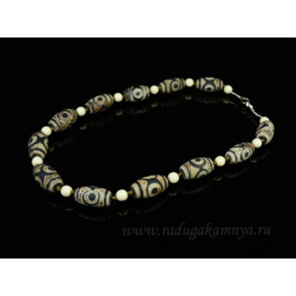 Бусы из агата тибетского бочонок 15*25мм матовый, шарик 8мм белый, черный, 52см