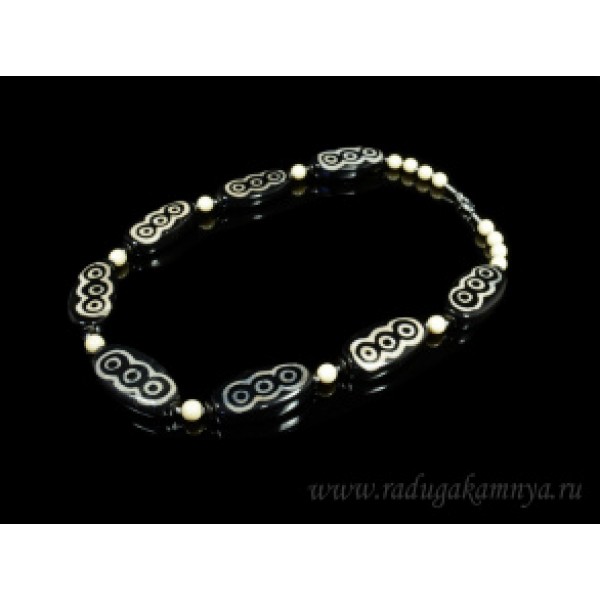 Бусы из агата тибетского овал 22*40мм, шарик 8мм цвет черно-белый, 53см.