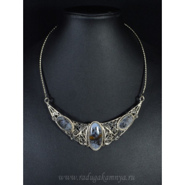 • Колье агат моховой, 47см.