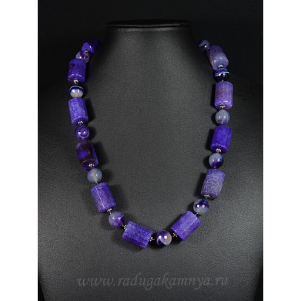 Колье из агата пати тонированного цилиндр с гранями 14*20мм шарик 10мм фиолетовый, 52см
