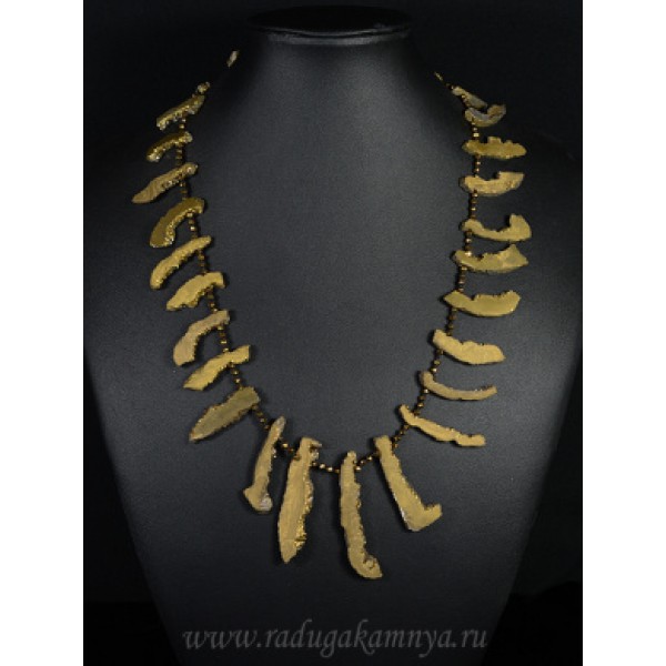 Колье из агата тонированного палочки 15-38мм цвет золотистый, 54см