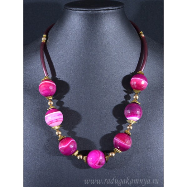 Колье на шнурке шарик гр.20мм с агатом тонированным цвет фуксия, 50см