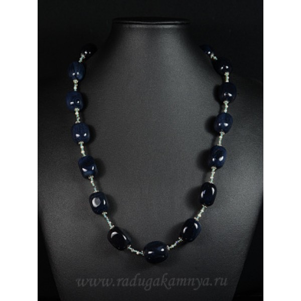 Браслет из агата голубого (сапфирин), мятый овал +..