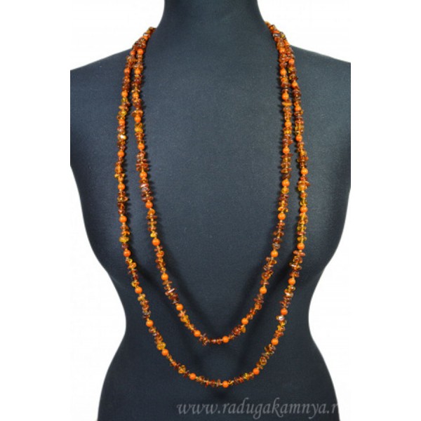 Бусы из янтаря крошка с шариком св.коньячный, карамельный, 200см