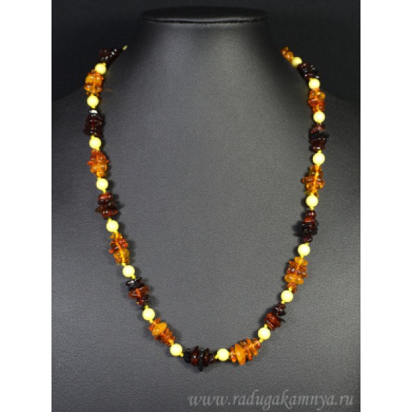 Бусы янтарные крошка с шариком св.коньячный, коньячный, молочный, 53см