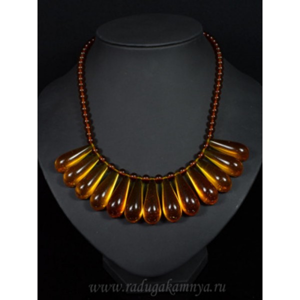 Колье янтарное капельки 12*33мм, шарик 6мм коьячный, 45см