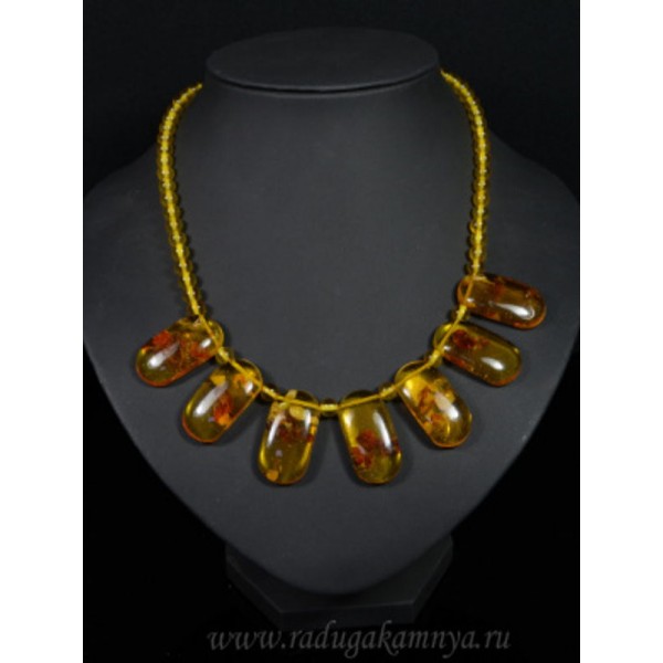 • Колье янтарное 7 овалов 16*30мм, шарик 6мм лимонный, 46см