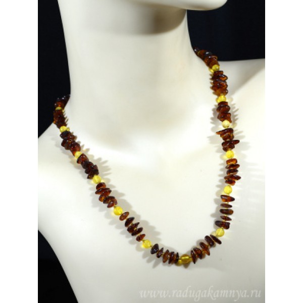 Бусы из янтаря крошка с шариком коньячный, лимонный, 50см