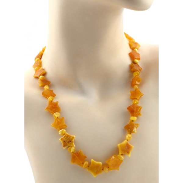 Колье из янтаря звездочки, галтовка медово-молочный матовый, 50см