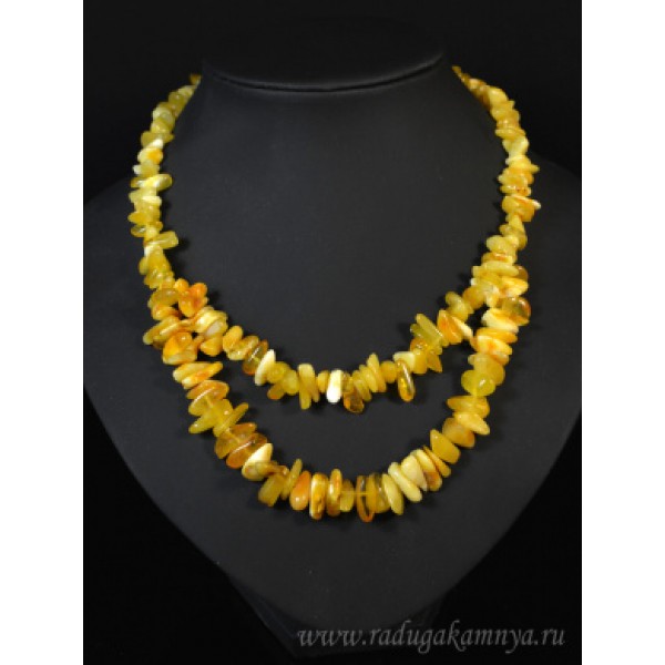 • Колье из янтаря крошка 2 нити молочный, 45см