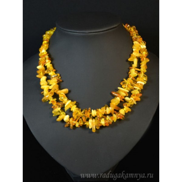 Колье из янтаря крошка 2 нити молочный, медовый, 45см
