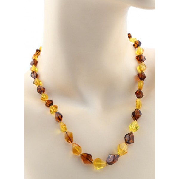 Колье из янтаря ромб с гранями медовый, коньячный, 47см
