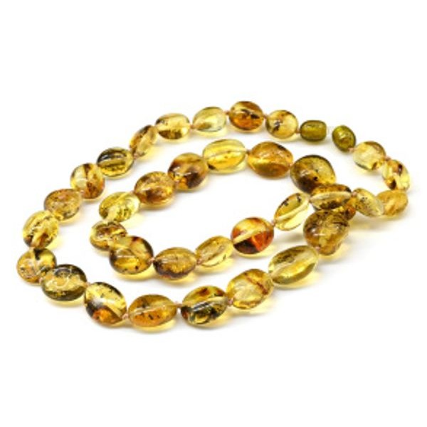 Колье из янтаря галтовка 9*10мм-13*15мм цвет лимонно-зеленый, 21,7г, 50см.