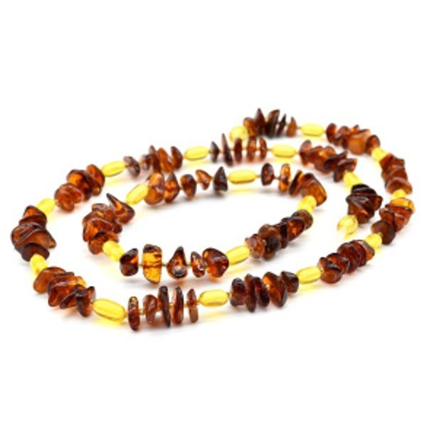 Бусы и браслет из янтаря крошка с овалом коньячный, медовый, 49см