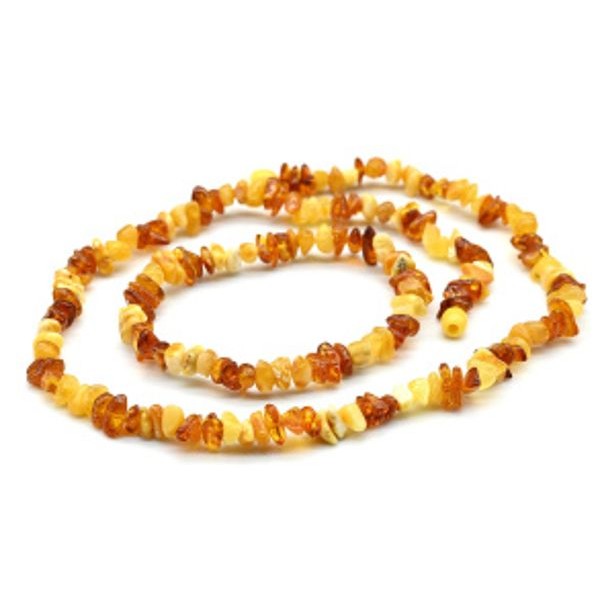 • Бусы и браслет из янтаря галтовка медово-молочный, св.коньячный, 50см
