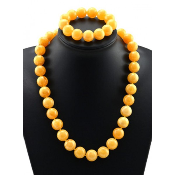 Бусы и браслет из янтаря шарик 16мм медово-молочный, 55см (иск.)