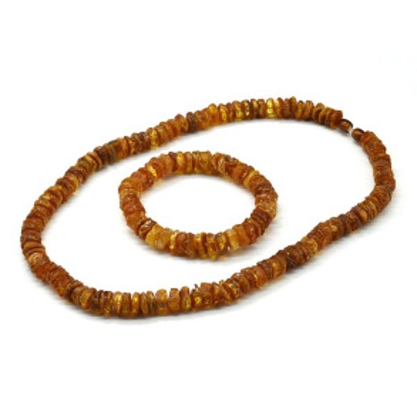 Бусы и браслет из янтаря легкой полировки диски 10мм цвет коньячный, 48см