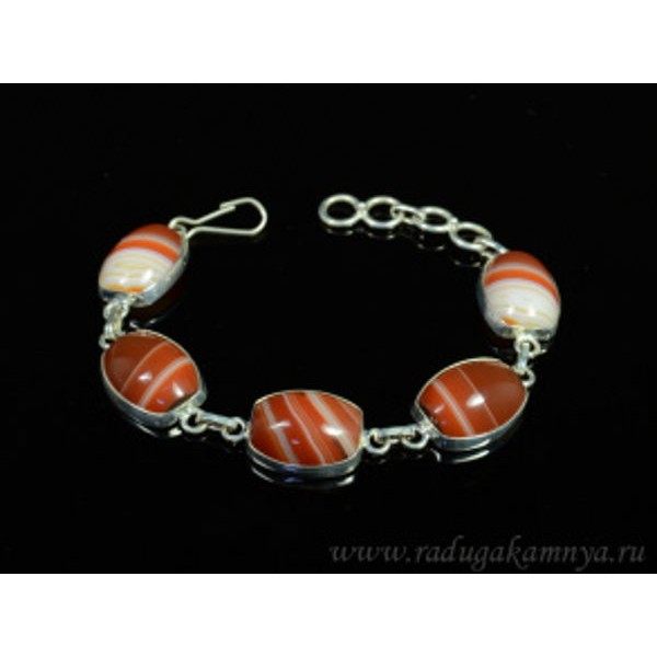 Браслет из сердолика в посеребрении 17*15мм, 15,5см.