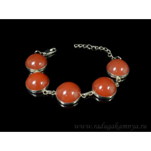 Браслет из сердолика, круг 12мм, 5 камней, цепо..