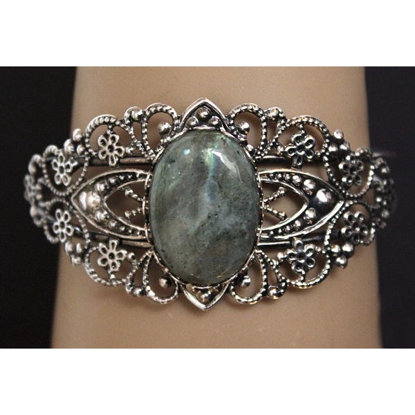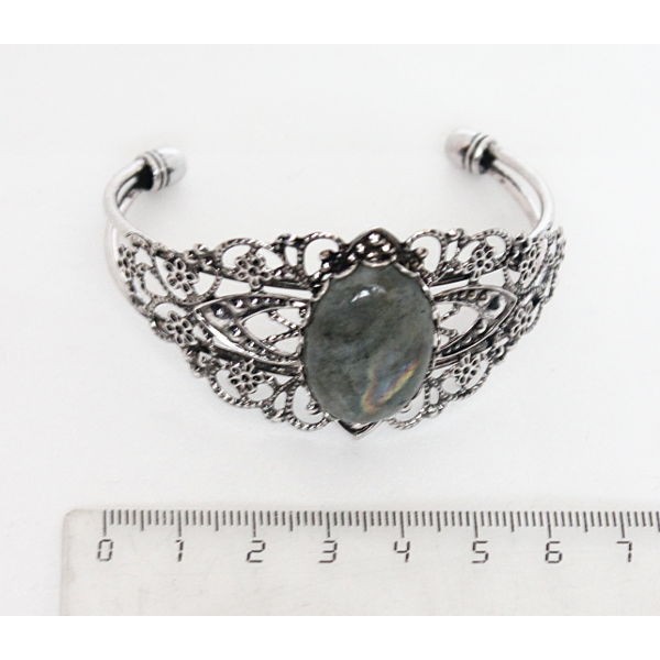 Браслет из лабрадорита, овал 25х18мм, жесткая основа цвет ант.серебро