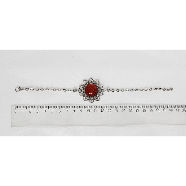 Браслет из авантюрина красного (синт.) "цветок", круг 18мм, на цепочке