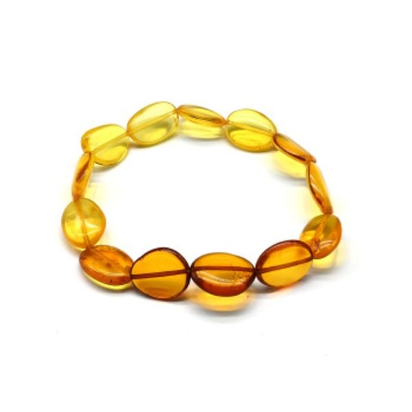 Браслет из янтаря галтовка 10*12мм цвет радуга лимонный, коньячный, 15см